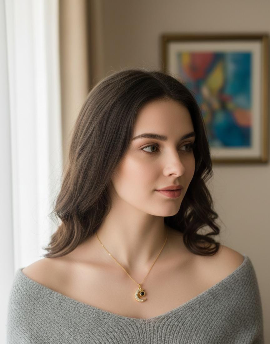 Design: A stunning 14K gold-plated moon motif with shimmering pavΓ© accents. ππ
