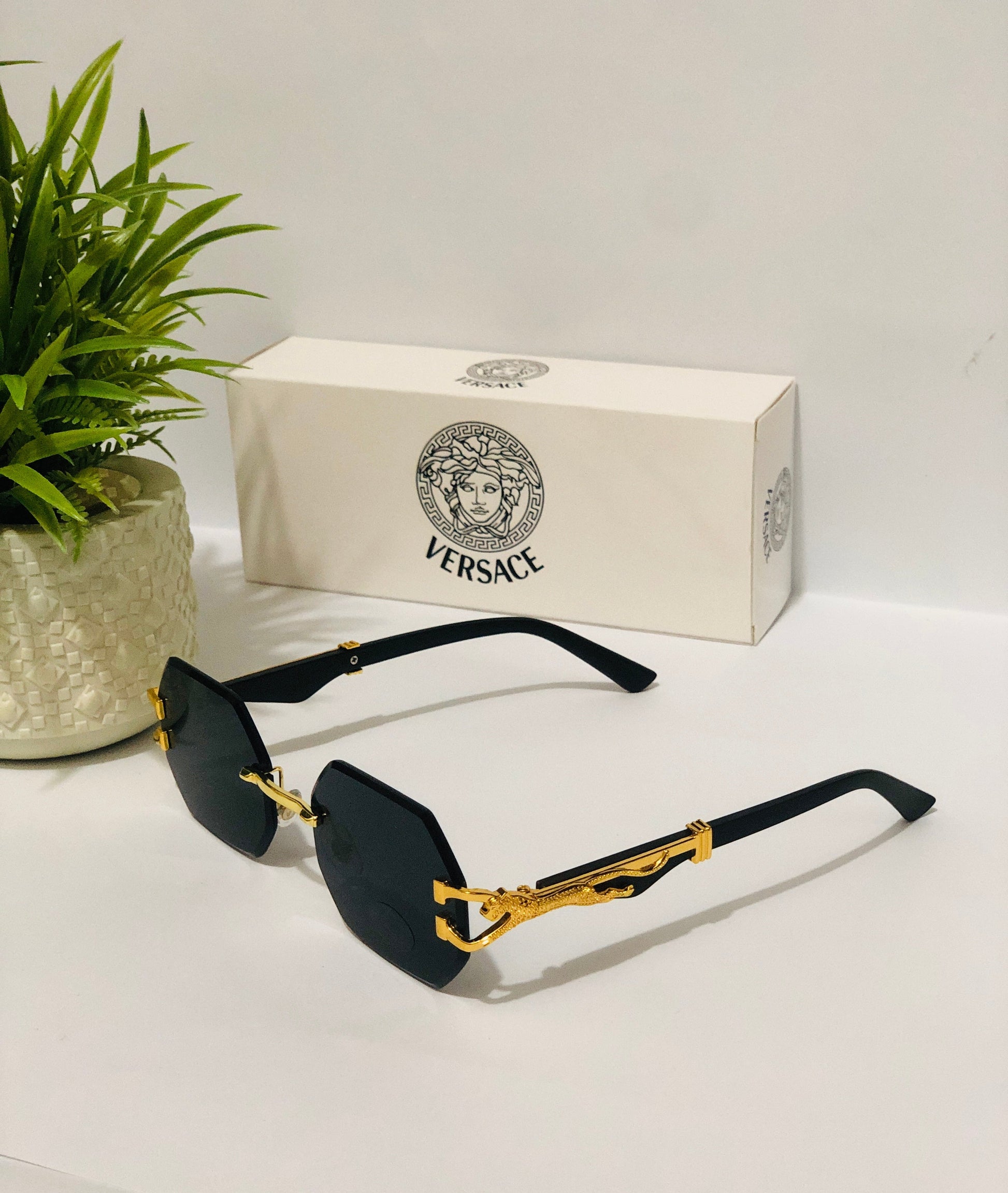 "Elevate your style 🔥 with these stunning Versace sunglasses 🕶️ featuring sleek black frames with luxurious gold accents 💎. Perfect for adding a touch of glamour ✨ to any outfit 👗."